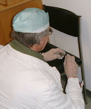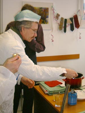 Werner Schmidt-Koska entnimmt Graphit-Proben
