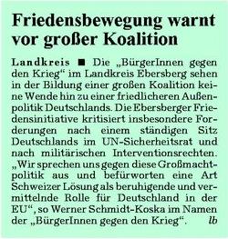 Warnung vor großer KoalitionDie Ebersberger Landkreisausgabe der Süddeutschen Zeitung vom 12.10.2005 veröffentlichte folgende Pressemitteilung: |