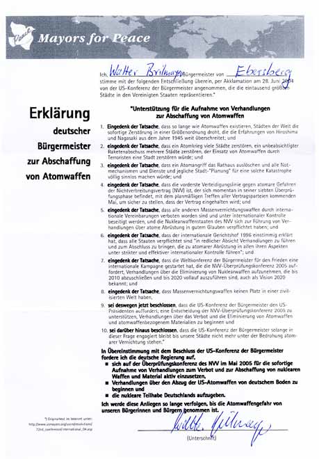von Ebersberg, Herrn Walter Brilmayer, zur Abschaffung von Atomwaffen
