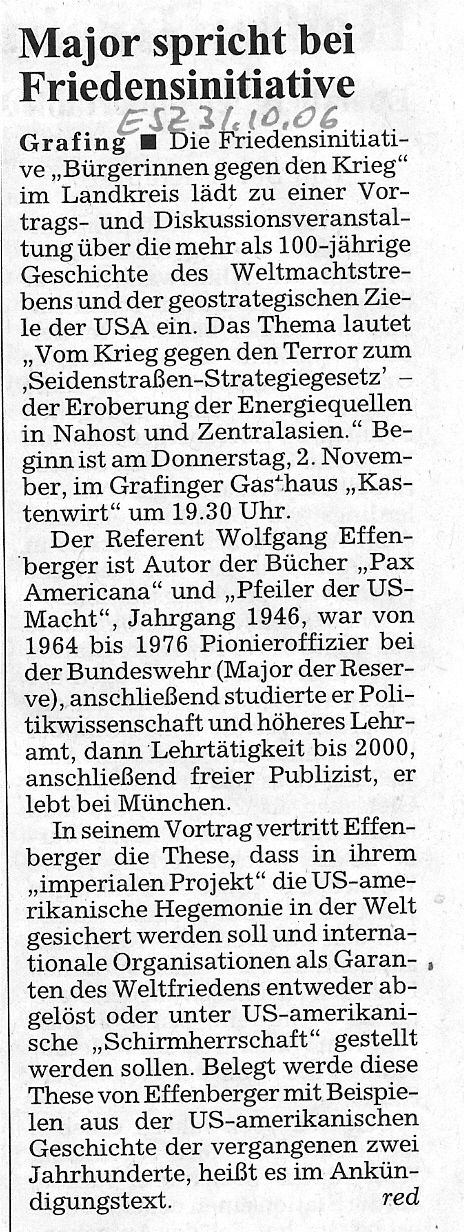 Vortrag von Wolfgang Effenberger (Autor von "Pax Americana") |