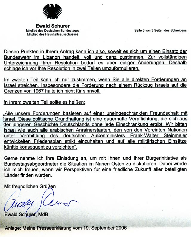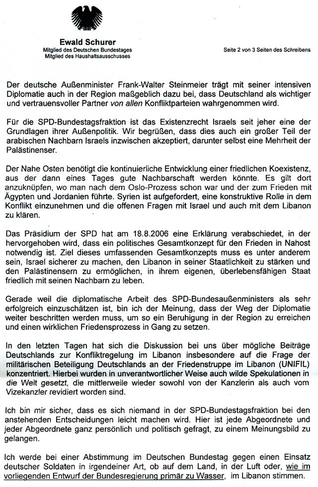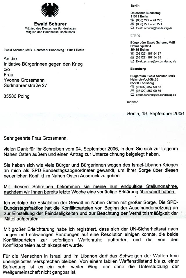 Endgültige Antwort des SPD-Bundestagsabgeordneten Ewald Schurer |