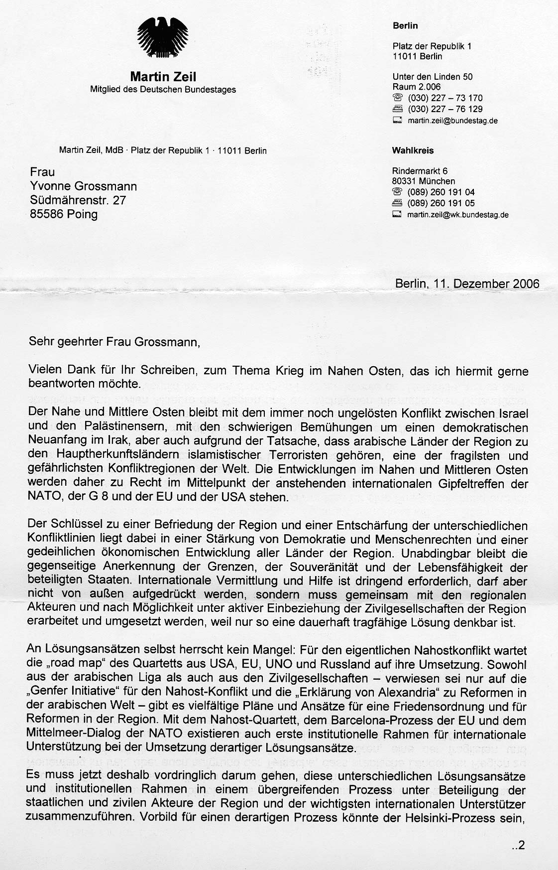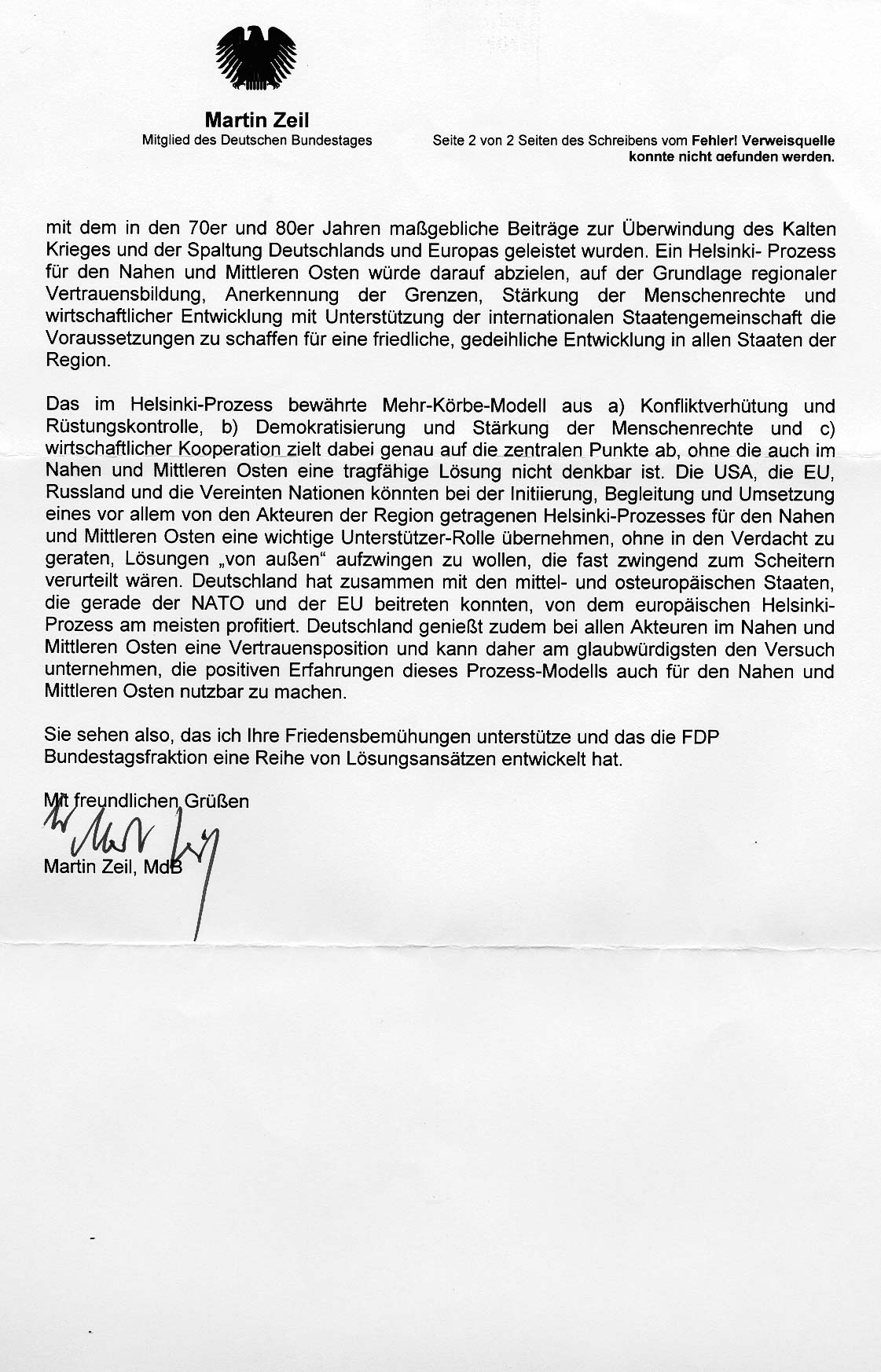 Antwort des FDP-Bundestagsabgeordneten Martin Zeil